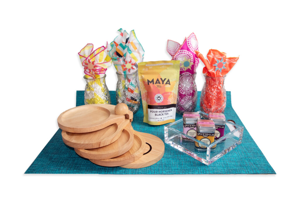 Our Pineapples on the Patio box provides you with everything you need to create a stunning welcome arrival tray. From the pineapple glasses to the serving tray, napkins, and sunshine stir sticks, every artisanal element in this hosting box was thoughtfully selected so you can host your guests, friends, and family with a ray of warmth and sunshine! Get one for your home today!