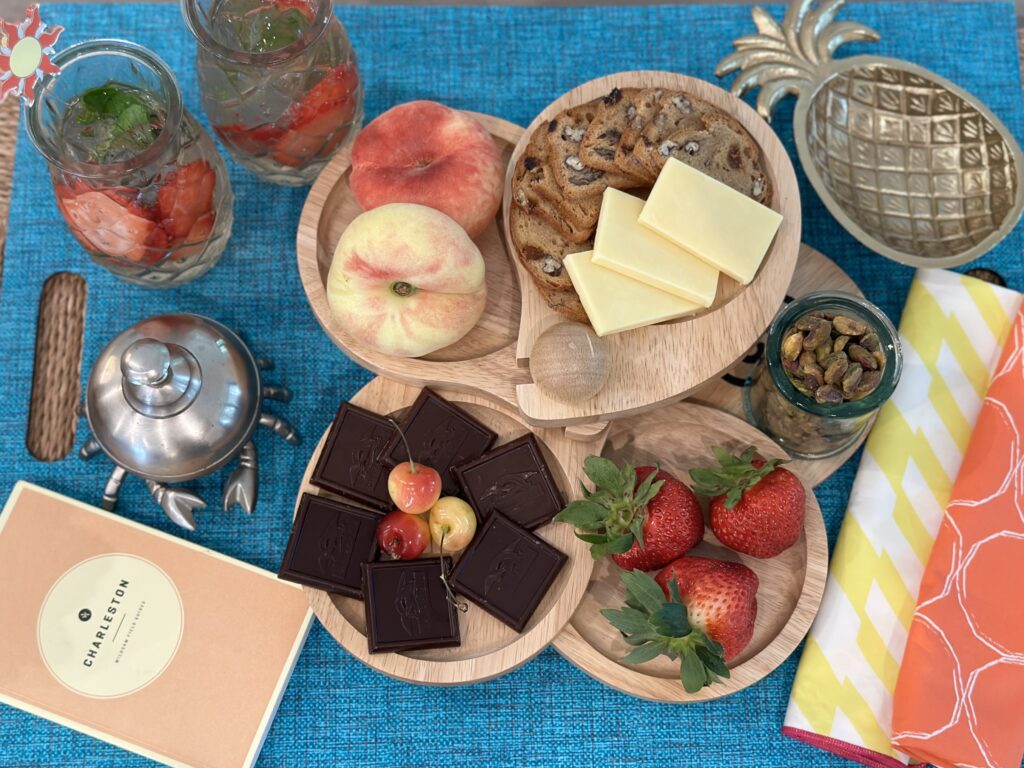 Welcoming guests and travelers into your home with an arrival tray presents an opportunity to introduce them to local flavors or your own signature snacks. Within the Pineapples on the Patio box, you’ll discover a versatile set of four stackable appetizer plates. These plates elegantly fan out, creating a vertical dimension to your arrival tray setup. As you curate a selection of small bites, consider incorporating locally sourced items when you can. And think about arranging a blend of healthy snacks, savory nibbles, and indulgent sweets. These seemingly small yet considerate details set the stage for a truly comfortable and unforgettable stay.